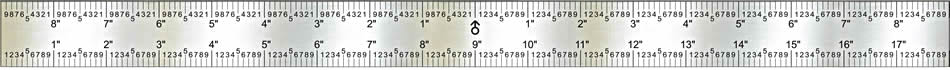 graduated in 1/10" (9"-0-9"), bottom edge graduated in 1/10" (0-18"). Made of heavy duty Stainless Steel (acid etched graduations).